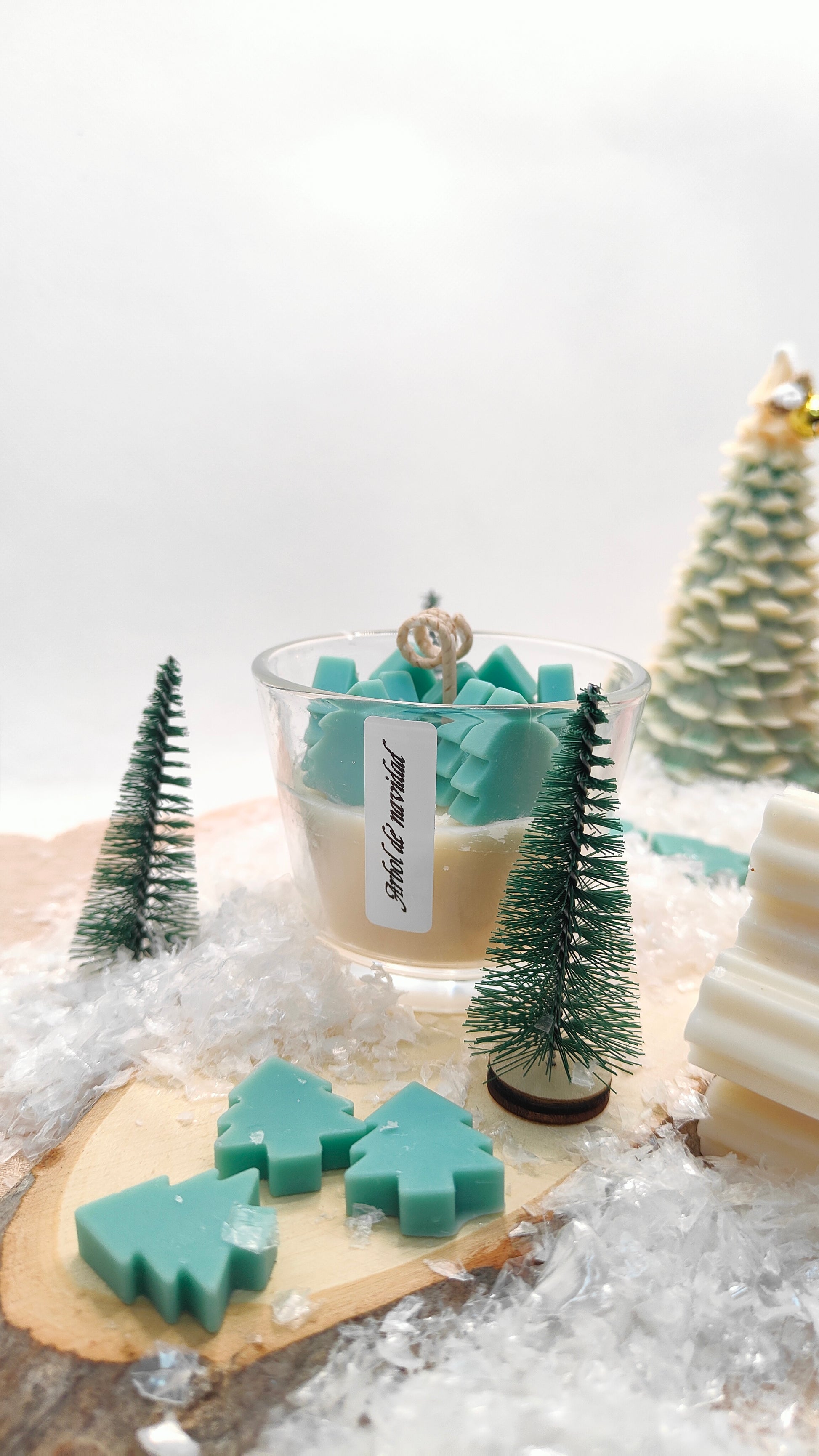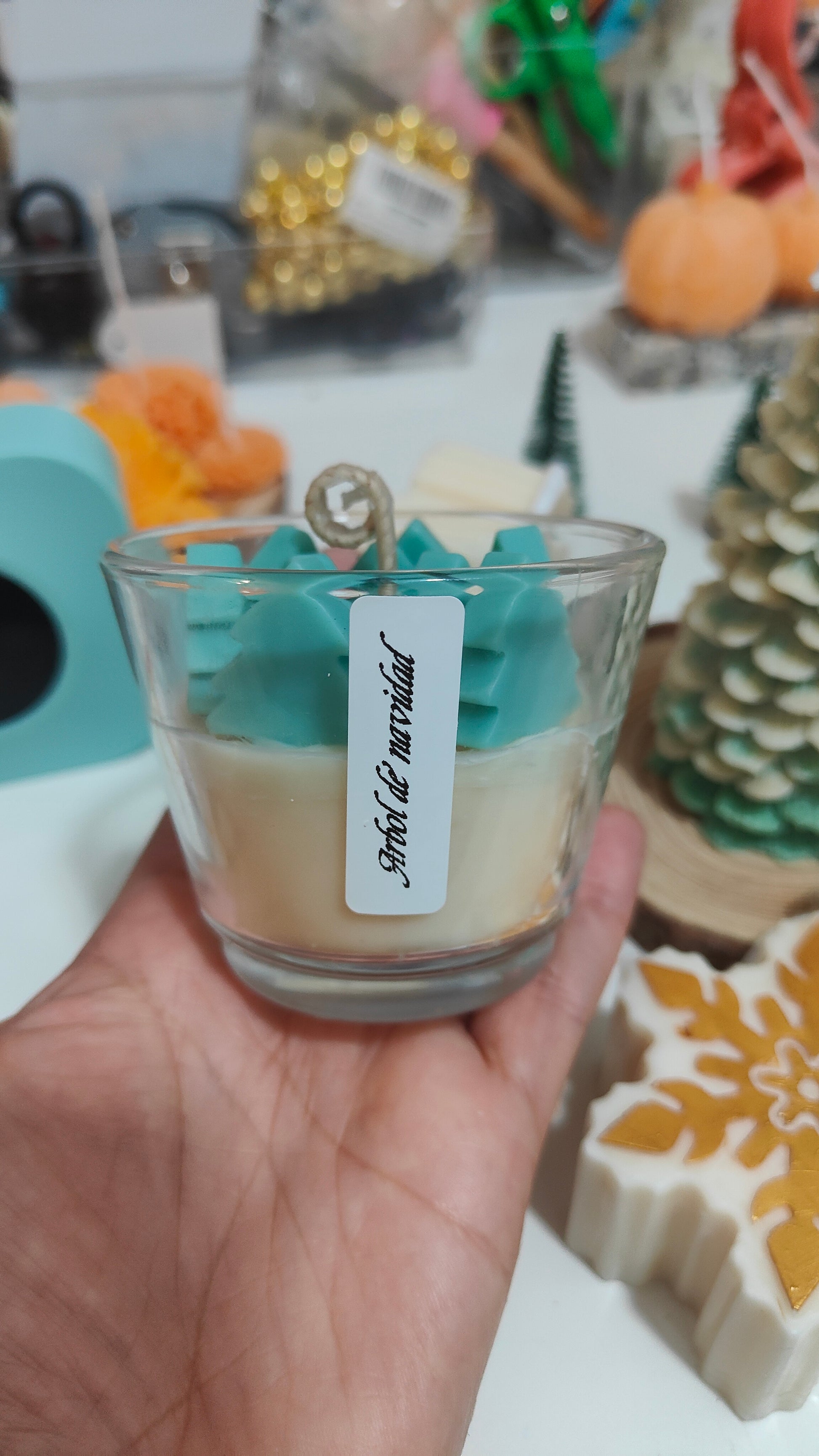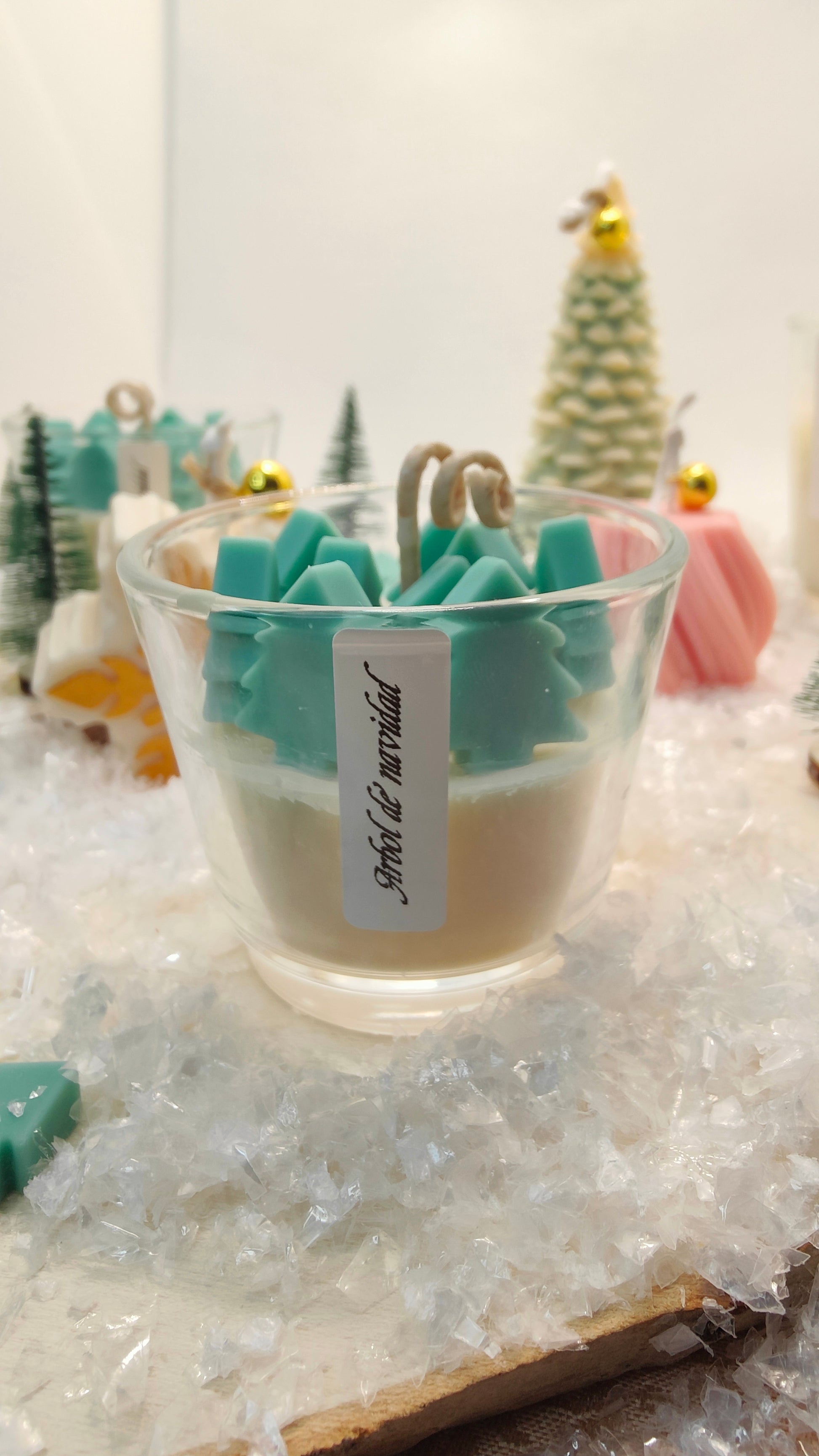 Vela de cera de soja en recipiente con arbolitos navideños ✨🎄